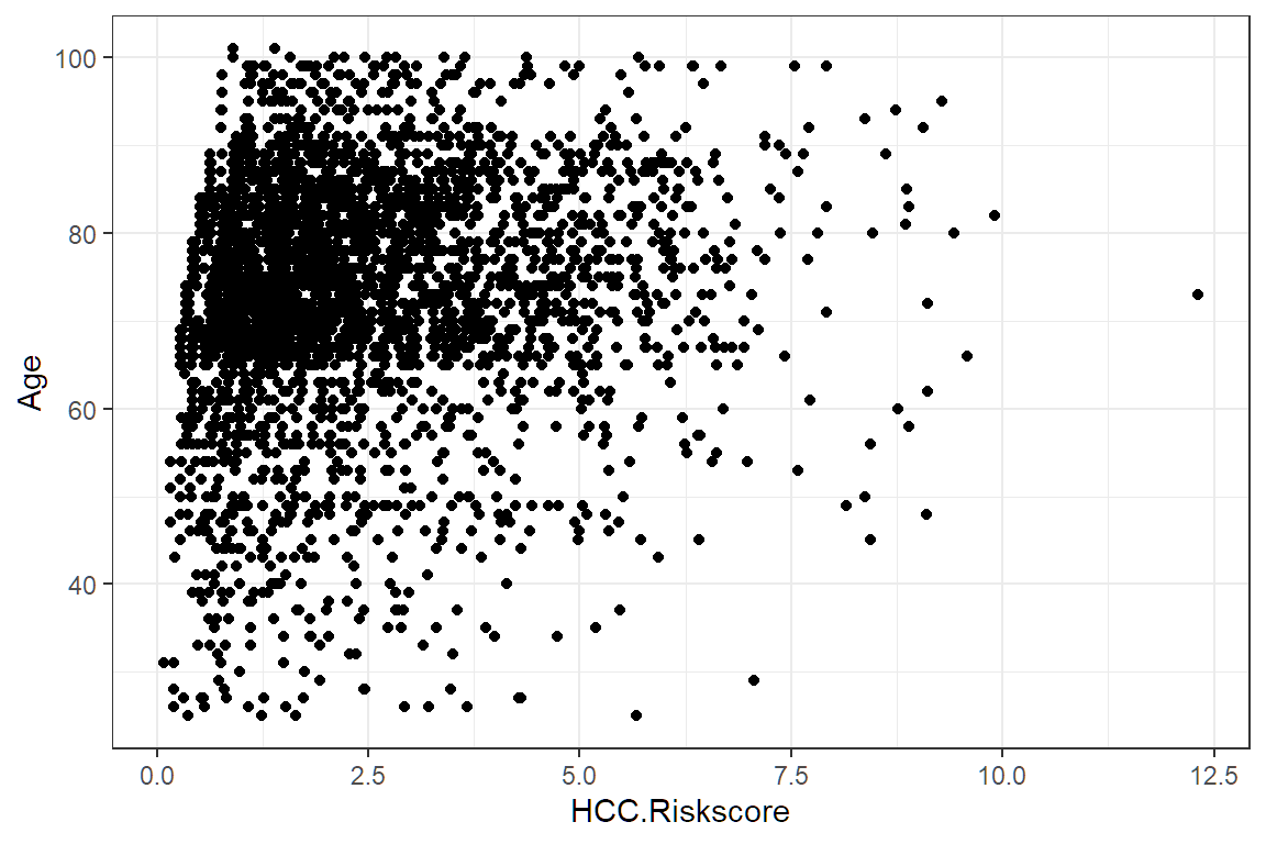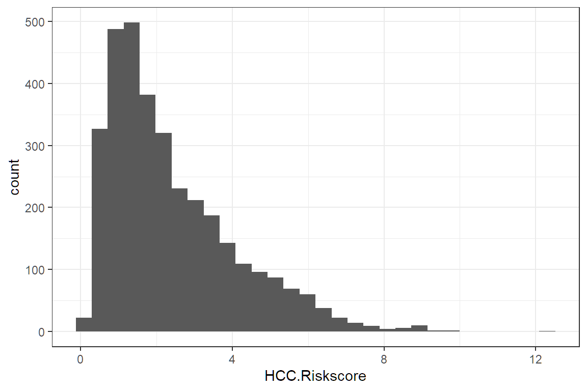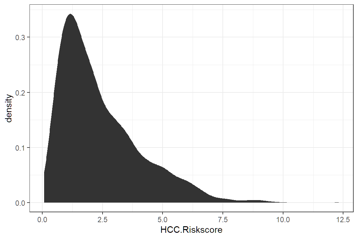 ggplot(aes(HCC.Riskscore))If we look at p, we see that it is nothing but white space with axis for count and income.