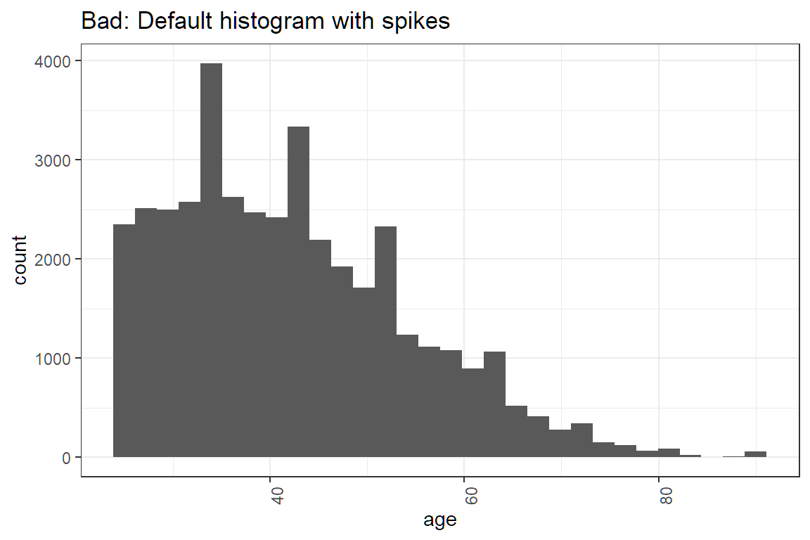 ggtitle("Bad: Default histogram with spikes")