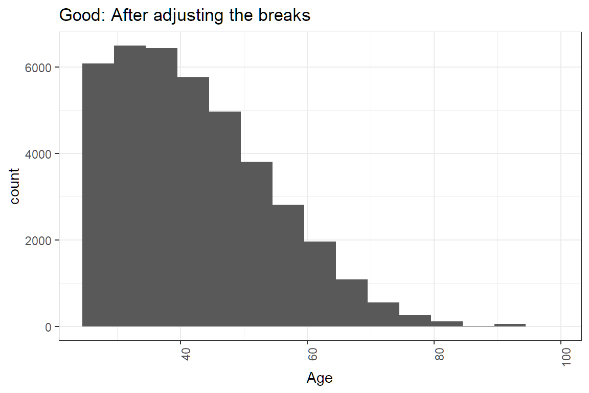 ggtitle("Good: After adjusting the breaks")