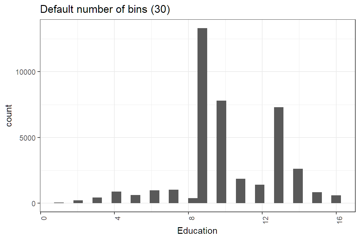 ggtitle("Default number of bins (30)")