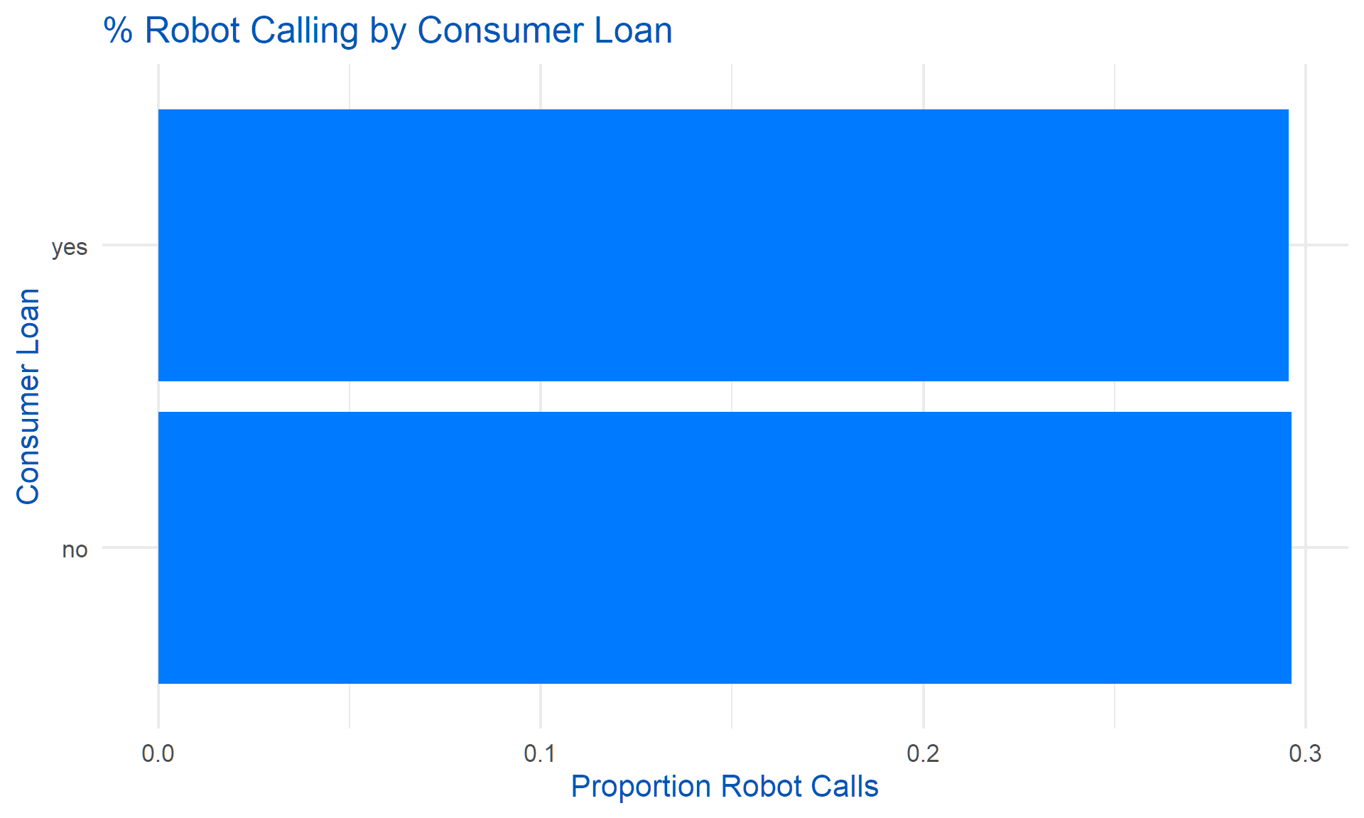 labs(title = "% Robot Calling by Consumer Loan", x = "Consumer Loan", y = "Proportion Robot Calls") +