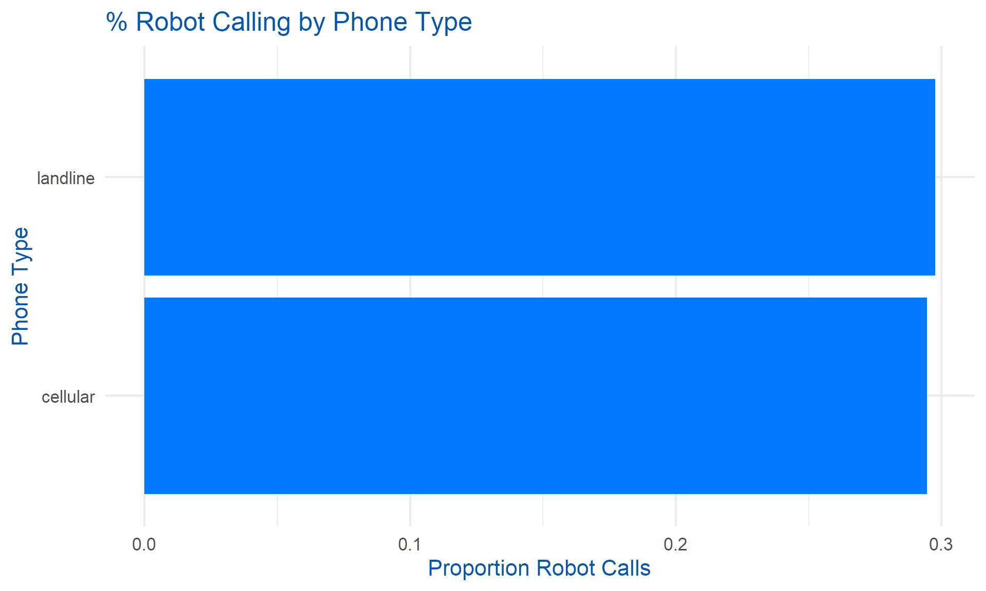 labs(title = "% Robot Calling by Phone Type", x = "Phone Type", y = "Proportion Robot Calls") +