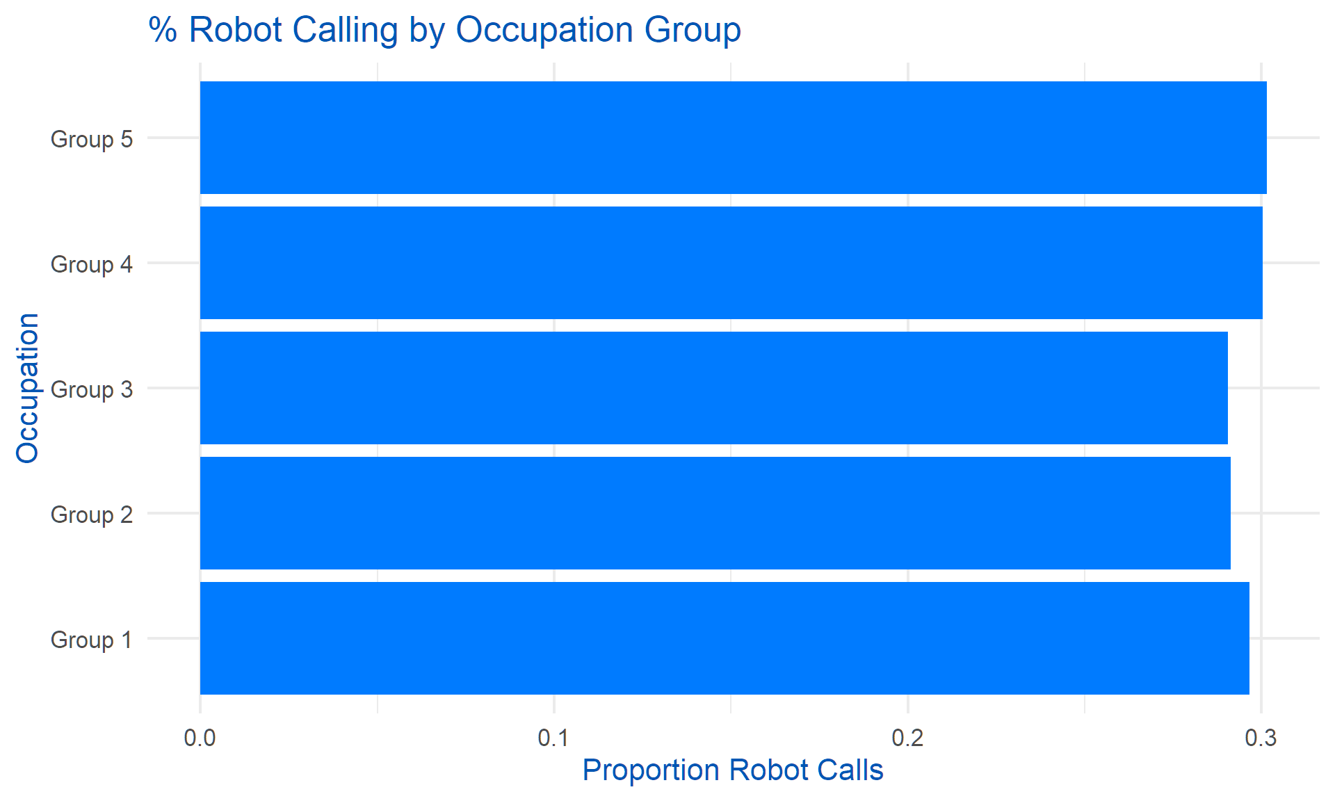 labs(title = "% Robot Calling by Occupation Group", x = "Occupation", y = "Proportion Robot Calls") +