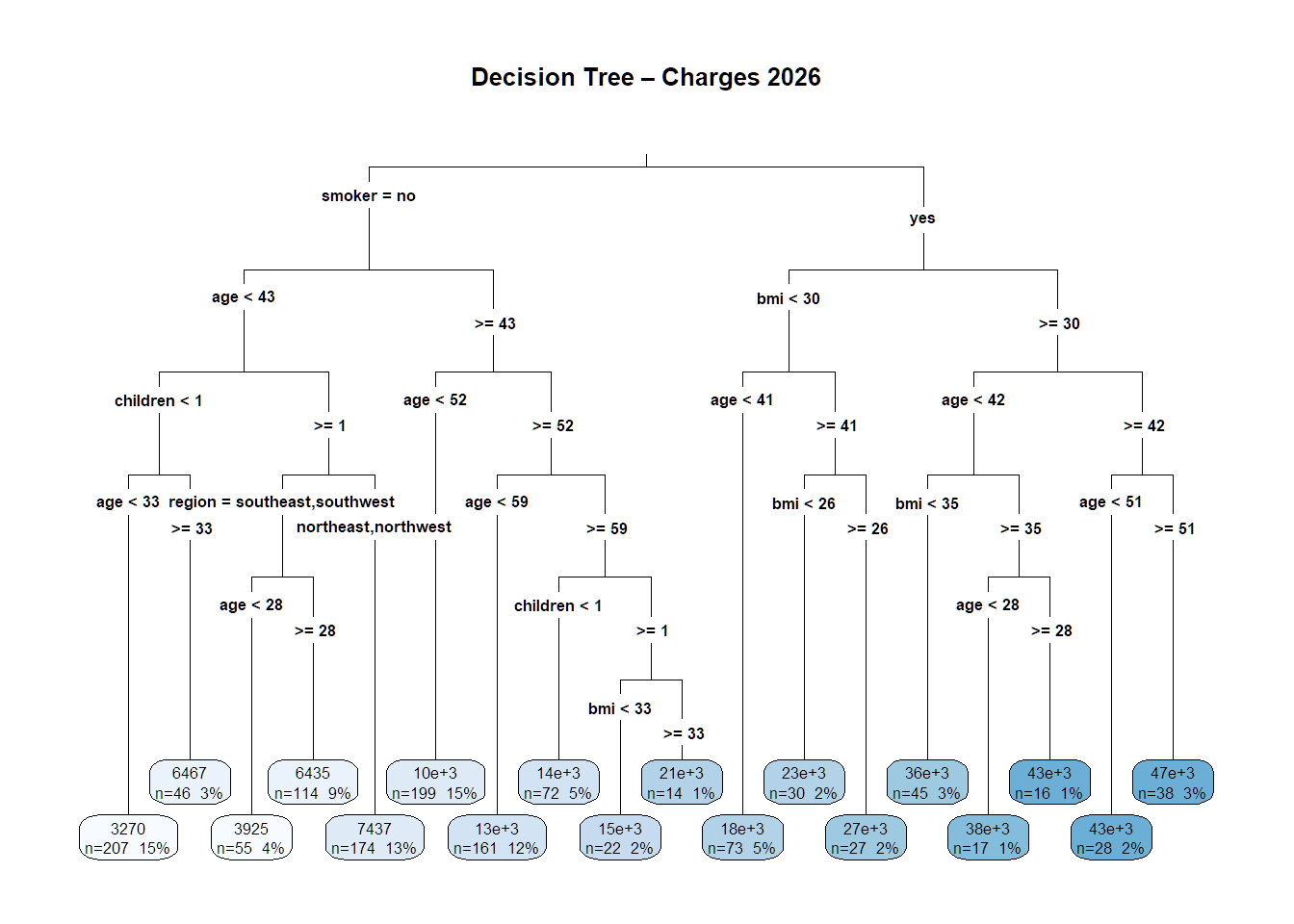 X_test <- model.matrix(charges ~ . -1, data = test)